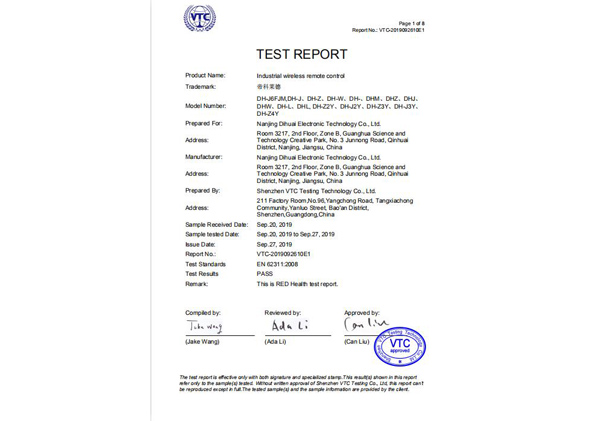南京帝淮电子科技有限公司,国内工业遥控器行业领军企业,自主研发、定制、非标设计各类工业级无线遥控器、工业级有线控制器、智能化自主算法逻辑的本地控制器等系列产品。已经申请及正在申请的技术专利、外观专利有近三十项左右,并通过了CE欧盟认证、国家级试验检验报告、EMC电磁兼容认证等。
